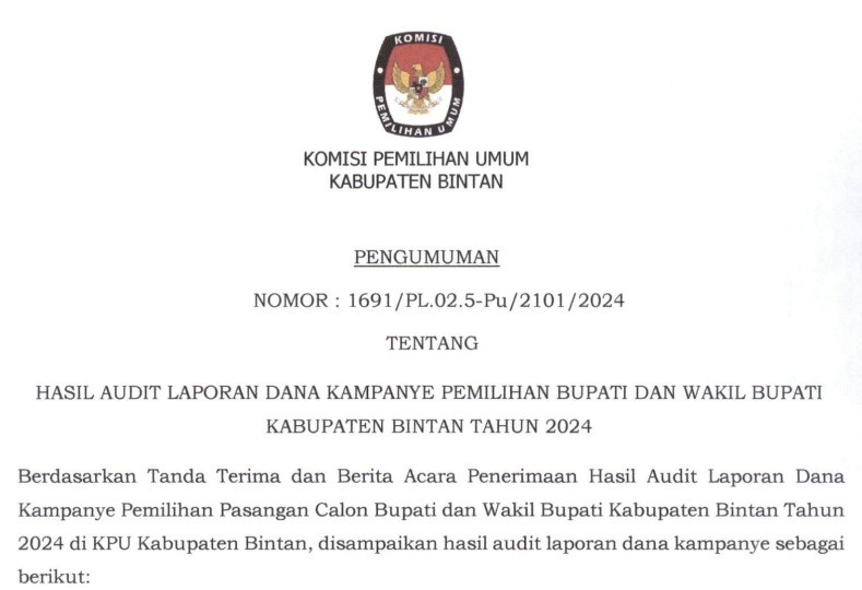 1691. PENGUMUMAN HASIL AUDIT DANA KAMPANYE Kamis, 12 Desember 2024 07:00 741 Selengkapnya dapat diunduh disini Bagikan: Telah dilihat 741 kali