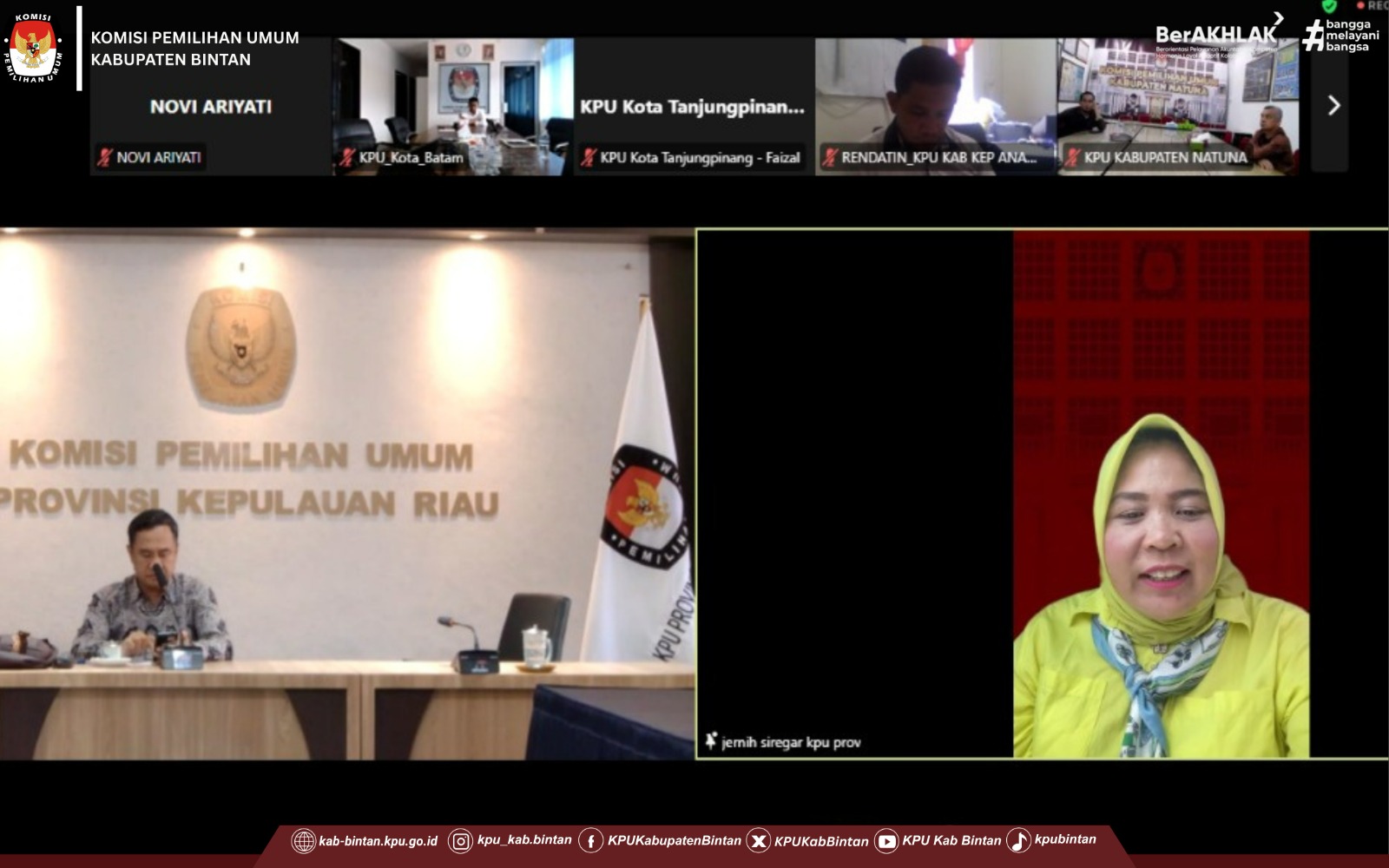 Bintan, kpu.go.id - Pada hari Senin, 29 September 2025, Komisi Pemilihan Umum (KPU) Kabupaten Bintan mengikuti Rapat Koordinasi Persiapan Pleno Rekapitulasi Pemutakhiran Data Pemilih Berkelanjutan (PDPB) Triwulan III Tahun 2025 yang diselenggarakan oleh KPU Provinsi Kepulauan Riau.