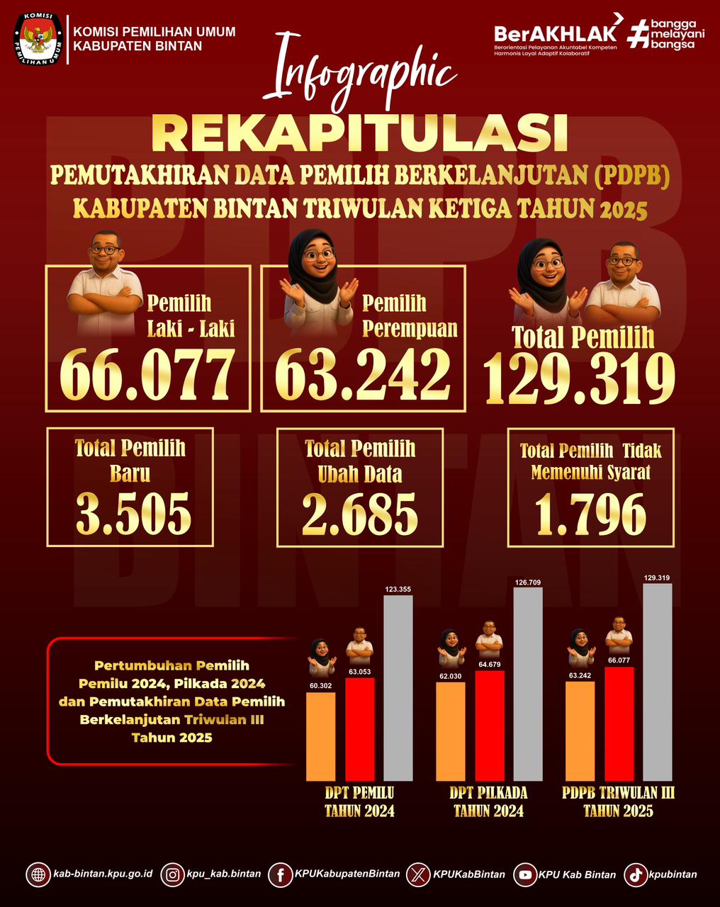 #TemanPemilih Yuk, simak infografis Rekapitulasi Pemutakhiran Data Pemilih Berkelanjutan (PDPB) Triwulan Ketiga Tahun 2025 Tingkat Kabupaten Bintan.