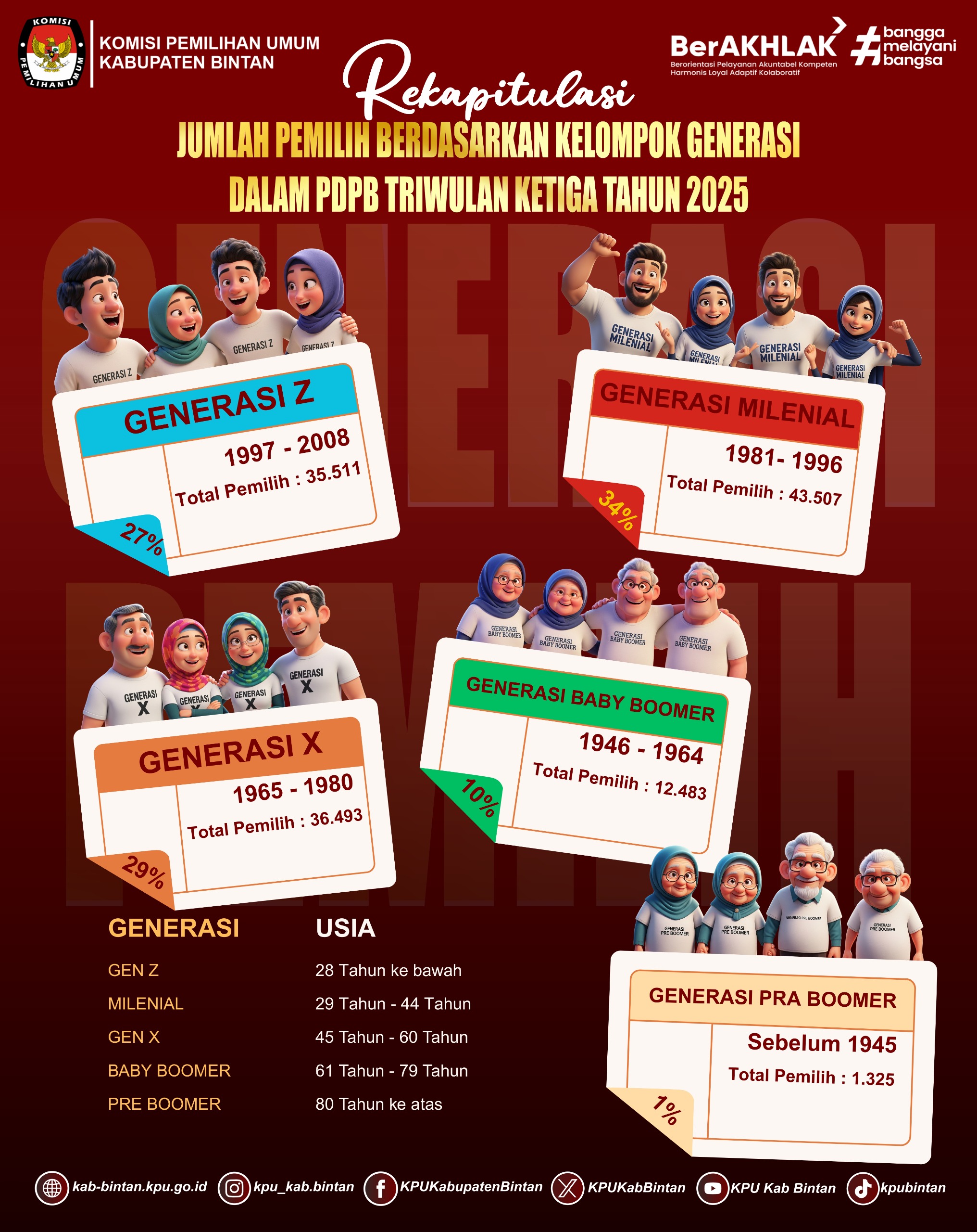 Berikut Rekapitulasi Jumlah Pemilih Berdasarkan Kelompok Generasi dalam Pemutakhiran Data Pemilih Berkelanjutan Triwulan Ketiga Tahun 2025 :