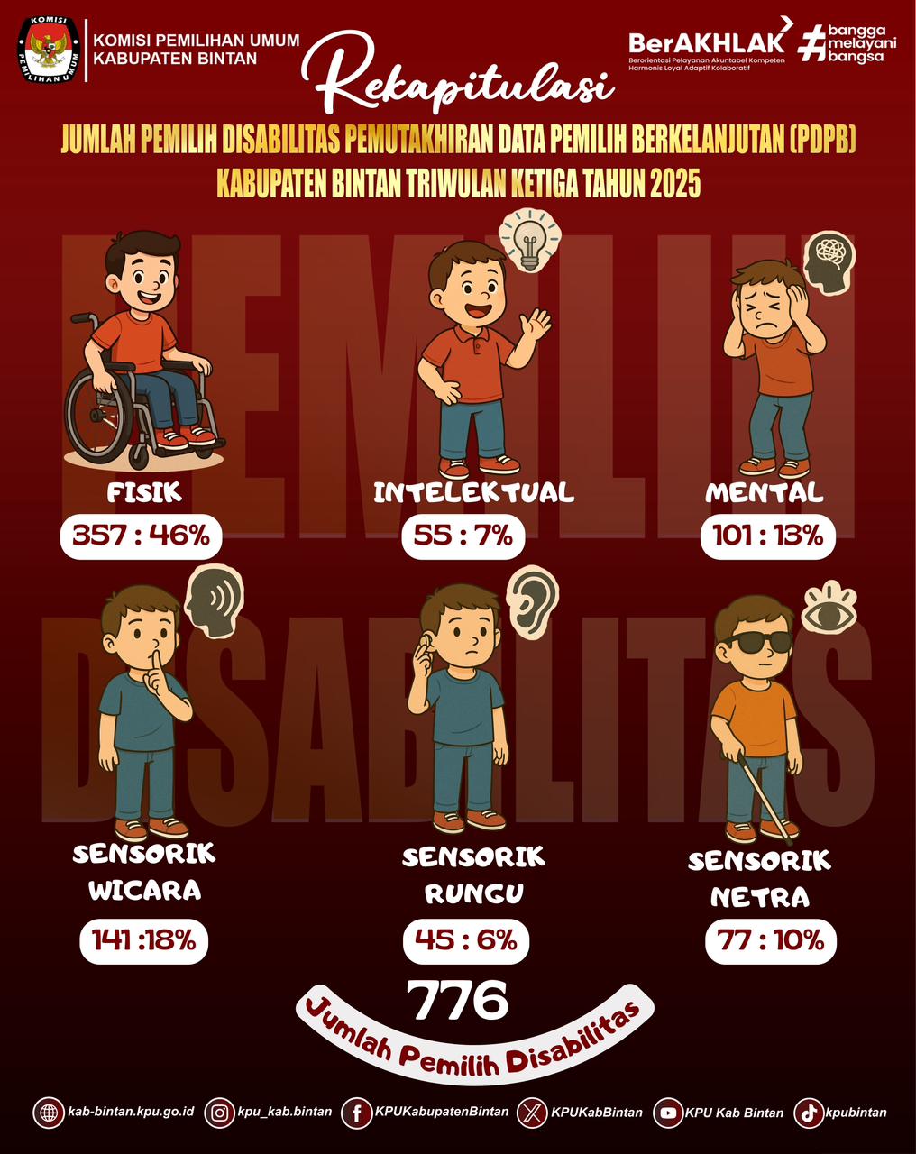 Berikut Rekapitulasi Jumlah Pemilih Disabilitas Pemutakhiran Data Pemilih Berkelanjutan Triwulan Ketiga Tahun 2025.