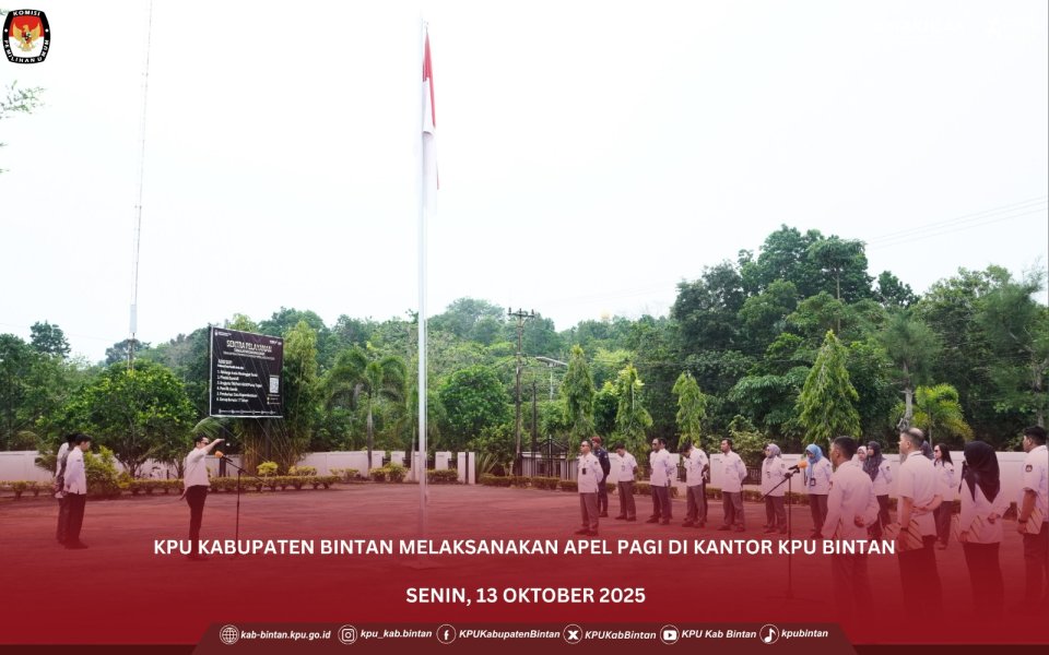 Senin, 13 Oktober 2025, KPU Kabupaten Bintan kembali melaksanakan apel pagi rutin di halaman Kantor KPU Bintan, Bapak Helianto, S.Pd. bertindak sebagai pembina apel.