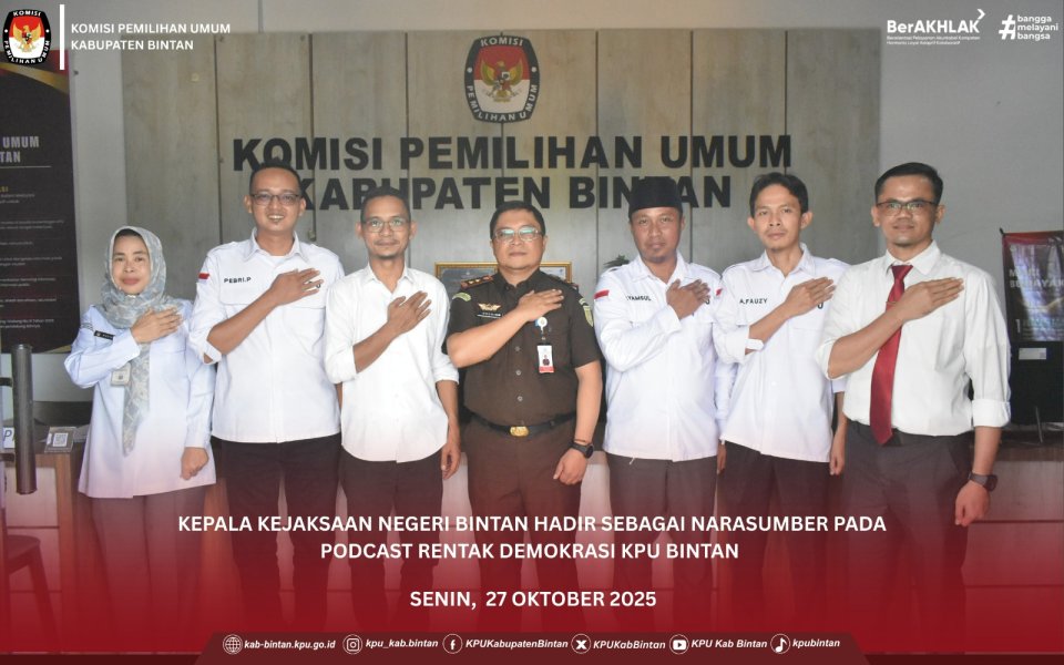 Pada episode kali ini, hadir narasumber dari Kepala Kejaksaan Negeri Bintan Bapak Rusmin, S.H., M.H. dengan mengangkat tema “Cegah Sebelum Melanggar: Peran Kejaksaan dalam Edukasi Hukum Pemilu.”