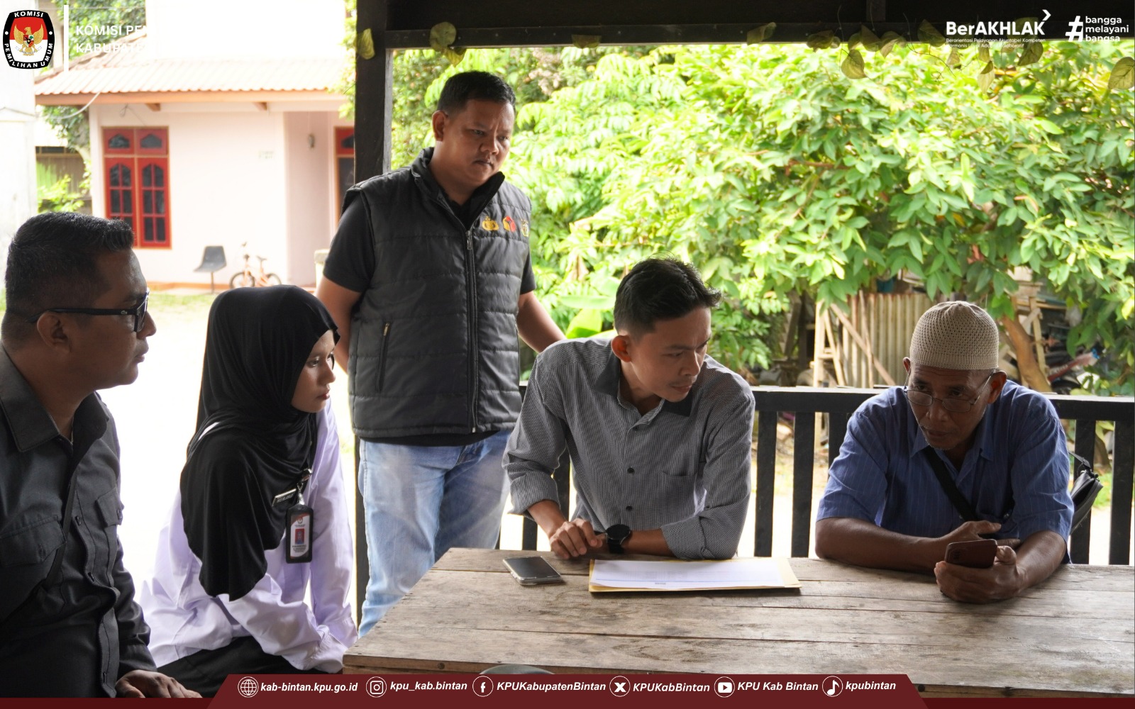 Bintan, kpu.go.id - KPU Kabupaten Bintan melaksanakan kegiatan Coktas (Pencocokan dan Penelitian Terbatas) dalam rangka Pemutakhiran Data Pemilih Berkelanjutan (PDPB) Tahun 2025 di Kecamatan Bintan Utara dan Seri Kuala Lobam pada Senin, 3 November 2025.