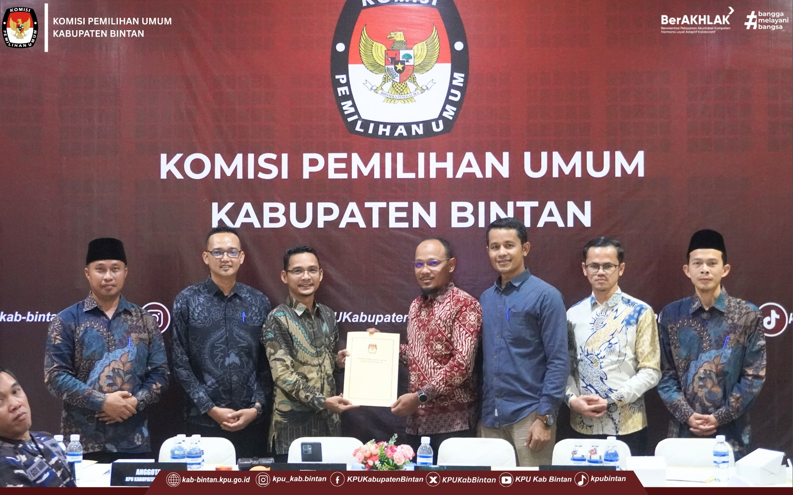 Rapat pleno ditutup ditandai dengan penandatanganan berita acara pleno oleh para komisioner KPU Bintan dan penyampaian salinan kepada pihak terkait.