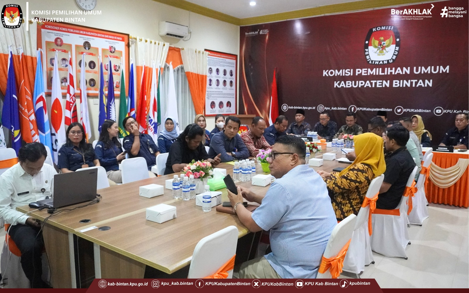 Bintan, kpu.go.id - Pada hari Sabtu, tanggal 6 Desember 2025, KPU Kabupaten Bintan telah melaksanakan Rapat Pleno Rekapitulasi Daftar Pemilih Berkelanjutan (PDPB) Triwulan Keempat Tingkat Kabupaten Bintan Tahun 2025. Rapat dilaksanakan di RPP KPU Bintan dan dipimpin langsung oleh Ketua KPU Kabupaten Bintan, serta dihadiri oleh seluruh Komisioner dan Sekretaris KPU Bintan, KPU Provinsi Kepulauan Riau, Bawaslu Kabupaten Bintan, Polres Bintan, Komandan Lanal Bintan, Kodim 0315 Tanjungpinang, Dinas Kependudukan dan Pencatatan Sipil, Kemenag Bintan, Badan Intelejen Daerah Kabupaten Bintan, Lapas Narkotika Kelas IIA Tanjungpinang, Dinas PMD Bintan, RSUD Bintan dan perwakilan partai politik tingkat kabupaten Bintan.