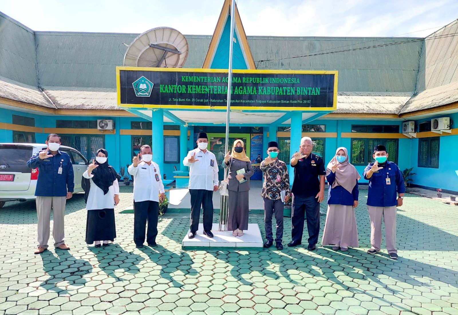 KPU Kabupaten melakukan kunjungan koordinasi ke Kantor Kementarian Agama Kabupaten Bintan terkait agenda Pemutakhiran Data Pemilih Berkelanjutan (PDPB) kepada peserta didik di sekolah Madrasah dan Pondok Pesantren yang ada di Kabupaten Bintan, Selasa (26/10) pagi di Kantor Kementerian Agama Kabupaten Bintan. Kepala Kantor Kemenag Kabupaten Bintan Drs. Erman Zaruddin, M.M.Pd menyampaikan dukungan sebagai bentuk membangun negara dalam mendukung pemutakhiran data pemilih berkelanjutan bagi peserta didik di Kabupaten Bintan. Berikut dokumentasi kegiatan kunjungan dalam rangka Koordinasi ke Kementrian Agama Kabupaten Bintan.