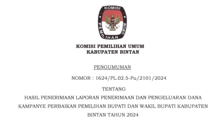 kab-bintan.kpu.go.id - Berdasarkan Tanda Terima dan Berita Acara Penerimaan LPPDK Perbaikan Pasangan Calon Bupati dan Wakil Bupati Kabupaten Bintan Tahun 2024 di KPU Kabupaten Bintan, disampaikan hasil penerimaan LPPDK Perbaikan sebagai berikut