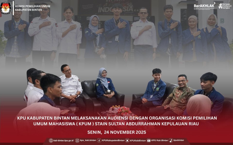 Senin, 24 November 2025, KPU Kabupaten Bintan menerima kunjungan audiensi dari mahasiswa STAIN Sultan Abdurrahman Bintan.