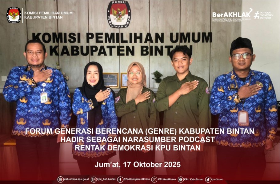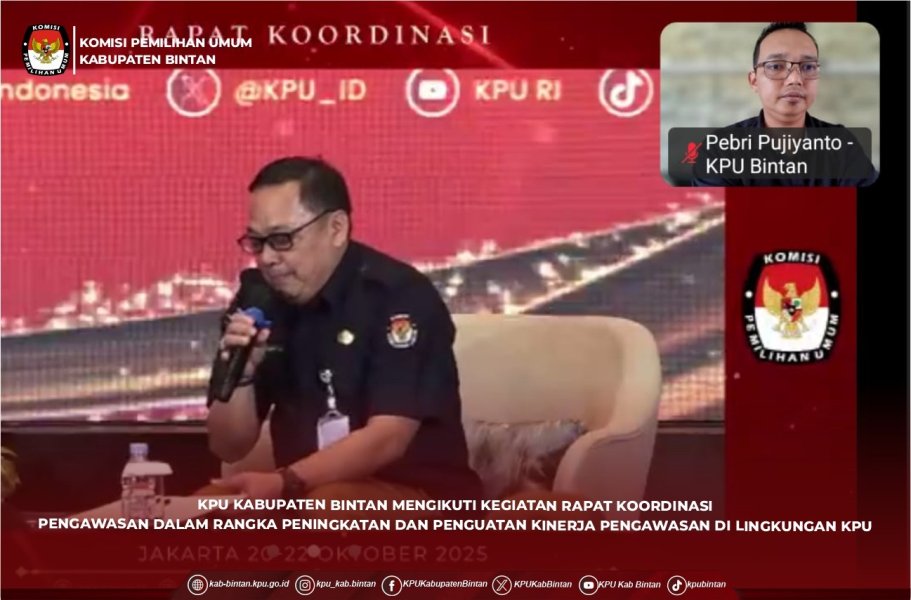 KPU Kabupaten Bintan baru saja mengikuti kegiatan Rapat Koordinasi Tindak Lanjut Data Hasil Sinkronisasi DP4 Semester II Tahun 2025 yang digelar oleh KPU Provinsi Kepulauan Riau secara daring. Rapat koordinasi tersebut dihadiri oleh KPU Kabupaten/Kota Se-Provinsi Kepulauan Riau pada hari Selasa, 14 Oktober 2025.