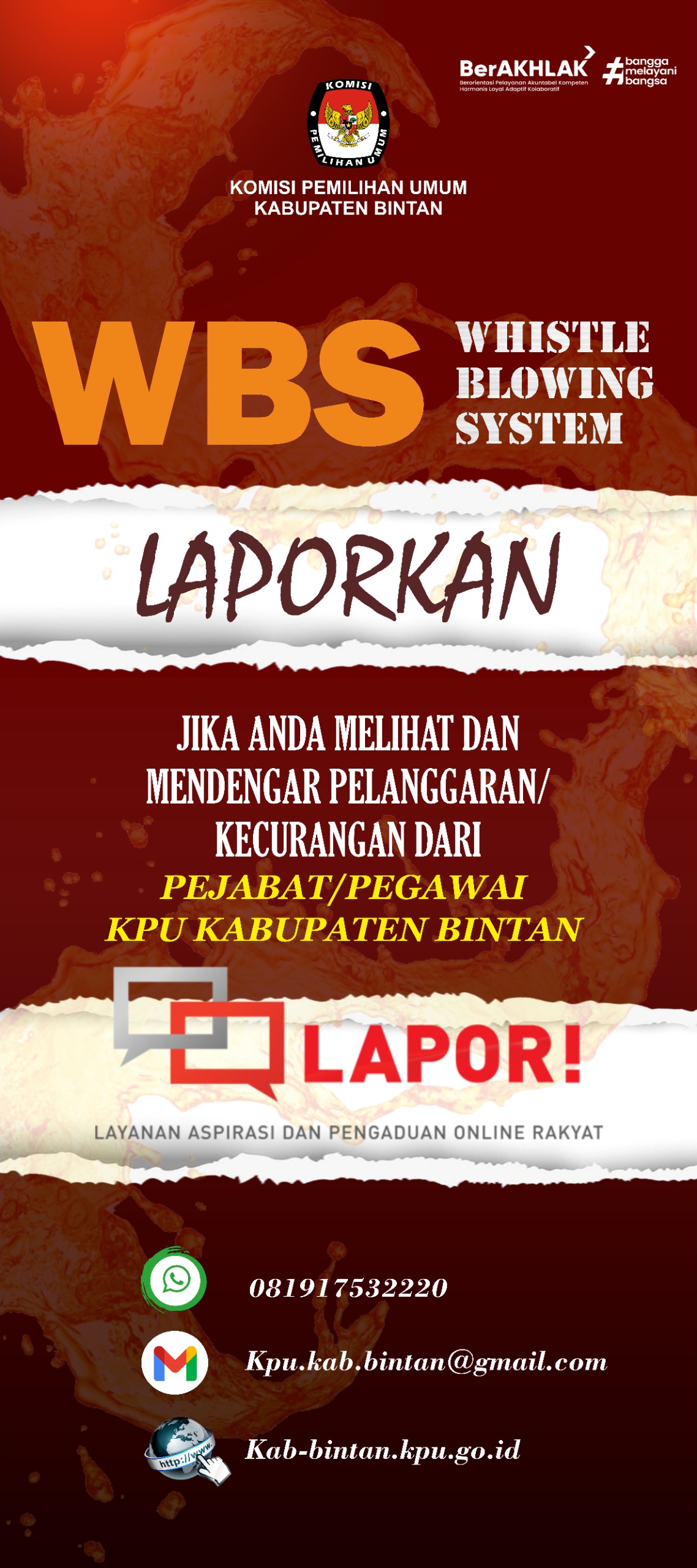 Laporkan jika anda melihat dan mendengar pelanggaran/kecurangan dari pejabat/pegawai KPU Kabupaten Bintan. Laporan data diajukan ke https://www.lapor.go.id/ .